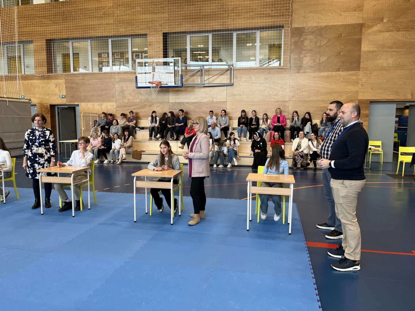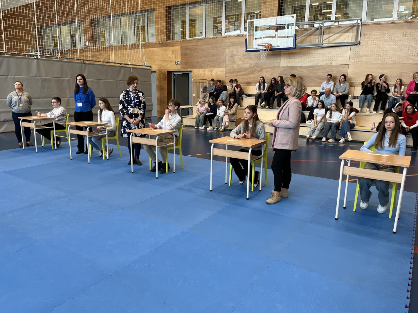 Natjecatelji su najprije pisali ispit. Za to su vrijeme mentori posjetili obnovljenu staru školsku zgradu u pratnji ravnateljice Anđelke Rihtarić. U pauzi između zahtjevnih zadataka natjecatelji su se opustili uz nastupe učenica OŠ Trnovec i OŠ Sveti Ilija koje su sudjelovale u glazbenoj emisiji „The Voice Kids“. Franka Barulek izvela je pjesmu „Glasna“, Hana Hrman „Cover me in sunshine“, Jana Kreš „Sve dok sanjaš“, a Vida Magdalenić „Oh, happy day“. Djevojke su za svoje izvedbe nagrađene gromoglasnim pljeskom.